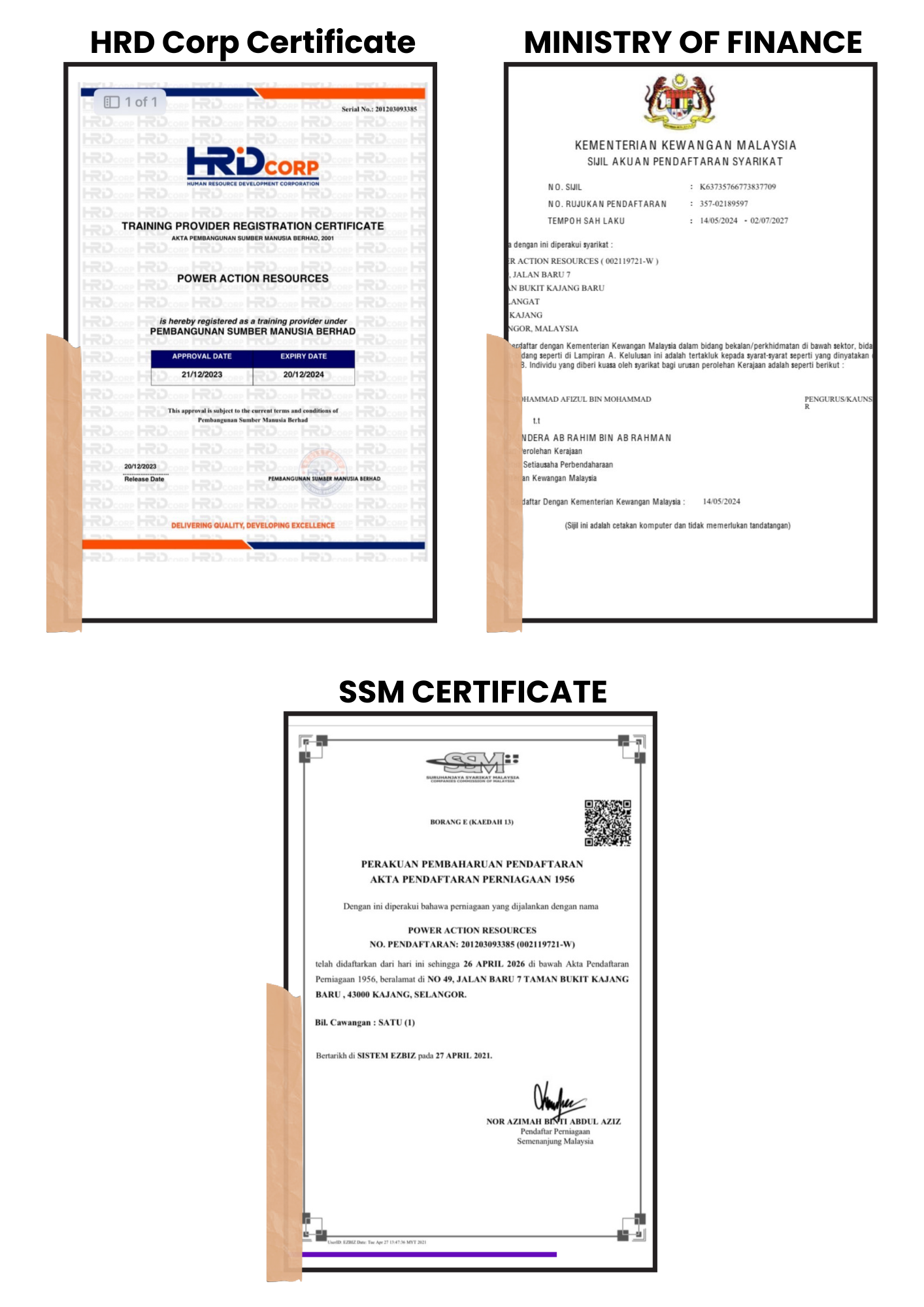 Our Certificates